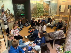 Am Bismarckplatz trennten sich unsere Wege. Die „Kleinen“ (Klassen 5 und 6) fuhren weiter zum Naturkundemuseum. Dort nahmen sie an Workshops teil und betrachteten faszinierende und spannende Exponate. Zu den Highlights zählten die Vogelspinne (vielleicht heißt sie ja Kankra???), das Skelett eines Menschen, verschiedene Edelsteine und noch vieles mehr.