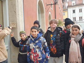 Die „Großen“ (Klassen 7 bis 9) erhielten eine kleine Stadtführung. Unter anderem wurde die kleine Stadtmaus gesucht (einige Kinder schummelten dabei und fragten einfach einen Passanten – aber das war ja nicht explizit verboten 😉). Anschließend besuchten wir den Ewigen Reichstag, das Goliathhaus, den „Dampfnudel-Uli“ sowie die historische Wurstkuchl an der Steinernen Brücke. Natürlich durfte auch ein kurzer Abstecher zum Regensburger Dom nicht fehlen.