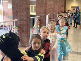 Mit viel Freude, Kreativität und guter Stimmung fand auch in diesem Jahr wieder unsere Faschingsfeier statt. Bevor es richtig losging, wählte jede Klasse der Grund- und Mittelschule jeweils zwei Kinder mit besonders ansprechenden Kostümen aus.