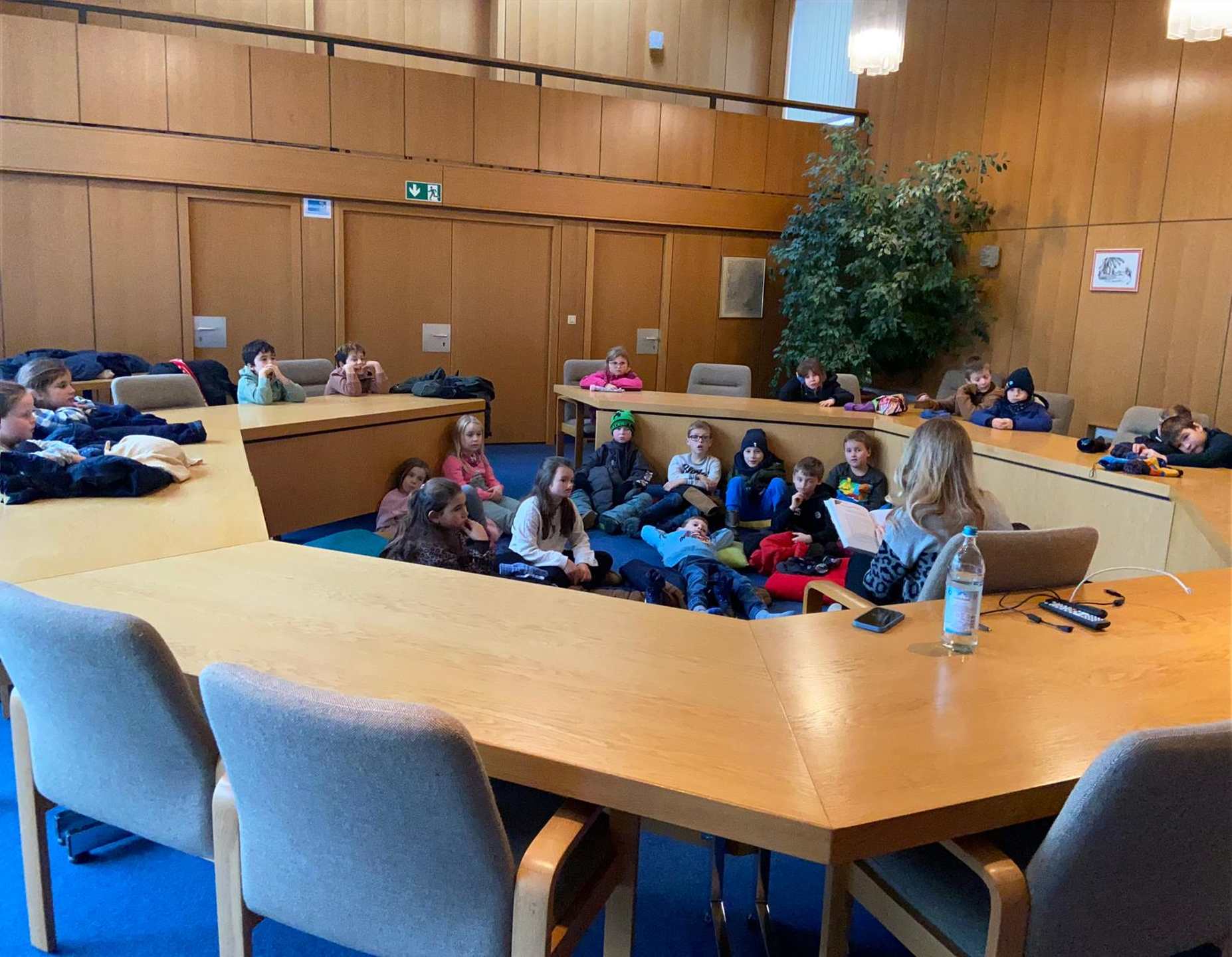 Jede Klasse besuchte zwei Lesestationen. Dort wartete jeweils eine Vorleserin oder ein Vorleser mit einer spannenden Geschichte. Die Auswahl war bunt: Abenteuergeschichten, lustige Erlebnisse, tierische Geschichten – und für die älteren Schülerinnen und Schüler auch sehr ernste Texte zum Nachdenken, wie das Tagebuch der Anne Frank.