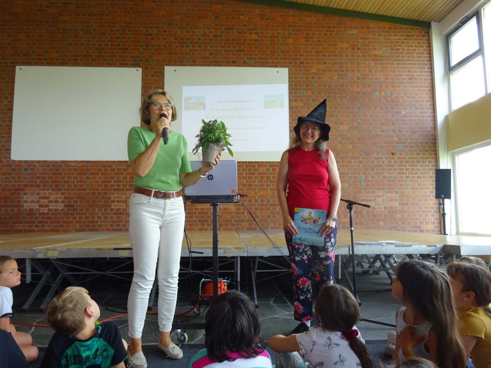 Es gab jede Menge Beifall und für die 1. bis 4. Klassen noch ein Bilderbuchkino Spezial: „Die kleine Hexe geht auf Reisen“ von Lieve Baeten aus dem Oettinger Verlag, vorgelesen im passenden Outfit von Frau Carolin Stark von unserer Gemeindebücherei. Herzlichen Dank dafür!